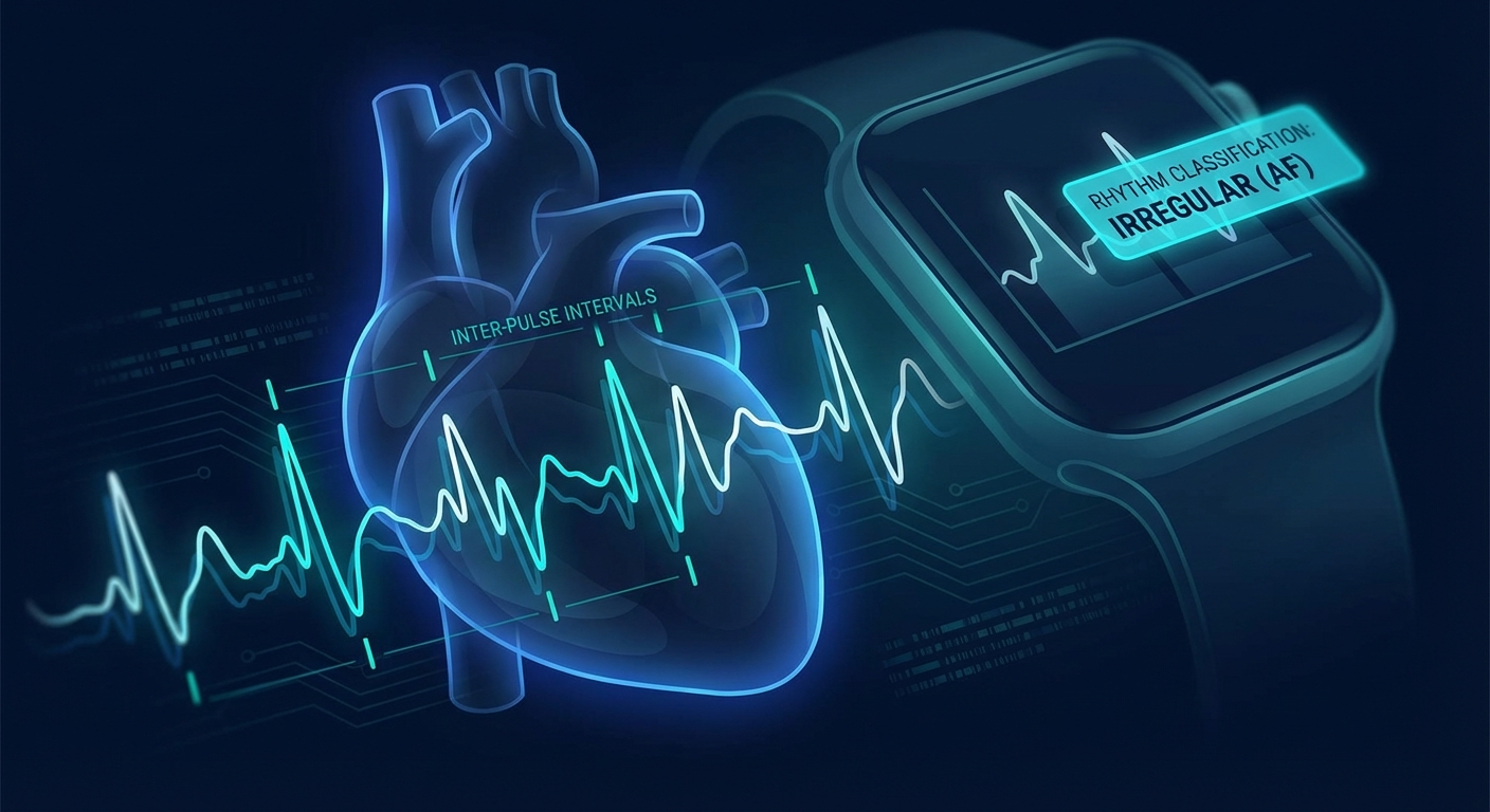 How PPG wearables detect atrial fibrillation: the algorithms behind AF screening, clinical validation data, limitations, and what a positive result actually means.